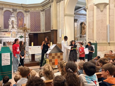 Publié le 07/10/2025Le 18 septembre nous sommes allés tous ensemble, élèves et équipe éducative à l'Eglise de Saint Loup pour la célébration de rentrée.